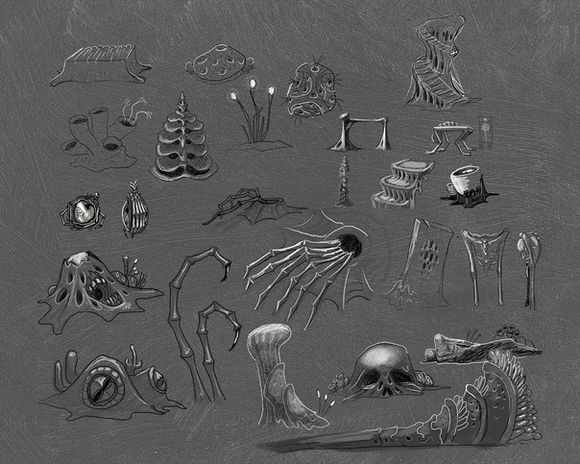 I pumped out concept art and narrative elements at the beginning but continued consistently through production, as we didn't have time to waste. We used an agile workflow (SCRUM) to accomplish this project in an organized way that would lower the chance of crunch time and help us produce viable, testable iterations of our game as we went. Part of this was finishing smaller slices of the overall workload weekly. In my case, I was concepting, modelling or sculpting and texturing assets for specific areas, creatures every week. All this, while writing the majority of dialogue and quest structure, creating sound and music and compiling the Art Bible. It was the most intense work schedule I've ever experienced, but also the most fun and most rewarding.